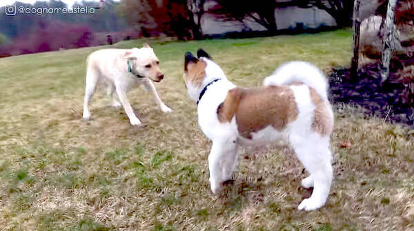 えーい 秋田犬は赤ちゃんもデカイから 極太腕のパピーパンチを受けたラブラドール 思いの外食らってそう 動画 年8月10日 エキサイトニュース